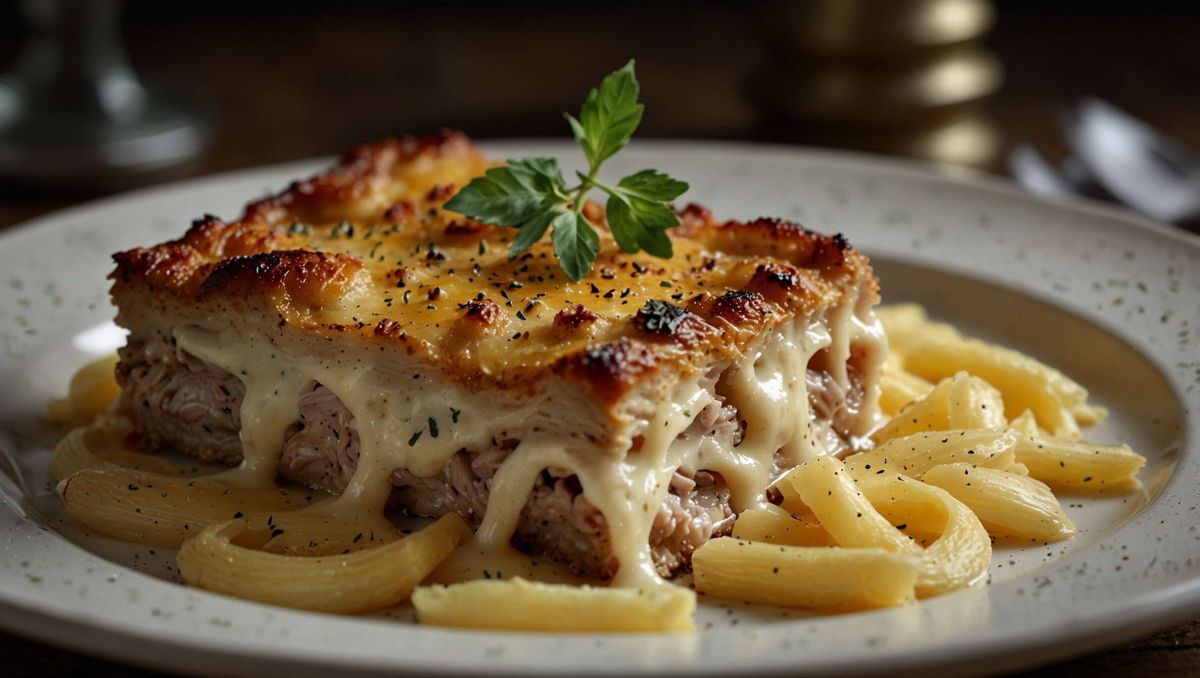 Transformez vos restes en un délicieux gratin de pâtes à la rouelle de porc. Ce plat facile et savoureux ravira petits et grands à table.