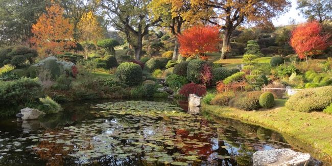 5 - Le jardin de promenade : Situé sous des chênes centenaires, ce jardin comprend deux étangs abritant des nymphéas, symbolisant le passage des saisons. Cerisiers et érables y apportent des couleurs variées tout au long de l'année.