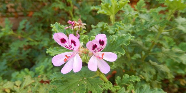 Géranium senteur de rose : Pelargonium capitatum 'Attar of Roses', Pelargonium 'Charity', Pelargonium graveolens 'Old Fashion Rose', etc.