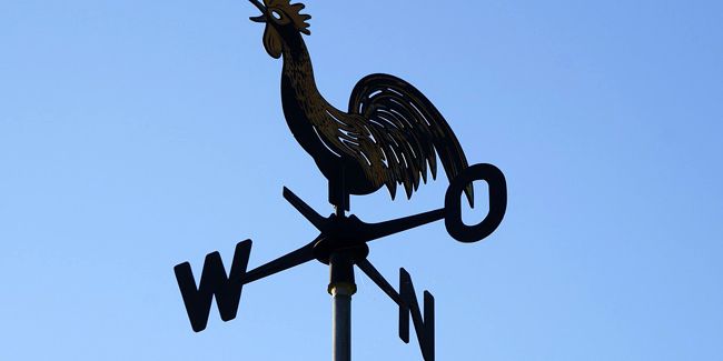 Avant tout, la girouette est un indicateur de la direction du vent. Elle se compose d'une flèche montée sur un axe, qui réagit au souffle du vent. Lorsque le vent souffle, il pousse l'arrière de la flèche, permettant à celle-ci de s'aligner avec le sens d'où il provient. Généralement, les points cardinaux sont représentés par les lettres N, S, E et O, facilitant ainsi une lecture rapide de la direction du vent.