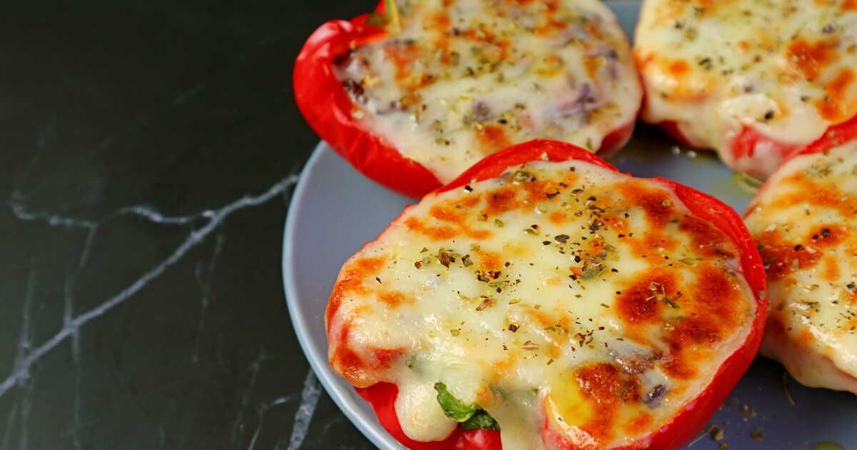 - Remplissez les poivrons précuits avec cette préparation, déposez une tranche de mozzarella sur chaque poivron, puis enfournez de nouveau jusqu'à ce que le fromage soit fondu et légèrement doré.