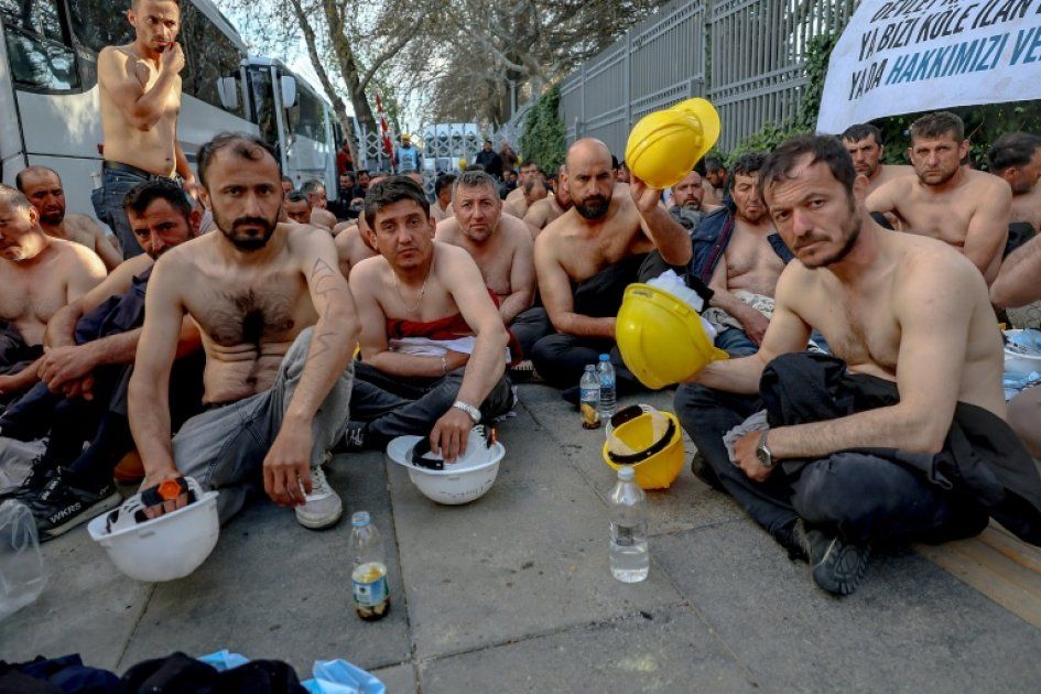 Les manifestants, portant des slogans écrits sur leur corps tels que "Nous avons encore plus faim" et "Nous continuerons jusqu'à obtenir nos droits", ont exprimé leur frustration avec des bruits de casques de sécurité battus sur le sol. Ils ont tenté sans succès de rencontrer le ministre de l'Énergie, Alparslan Bayraktar.