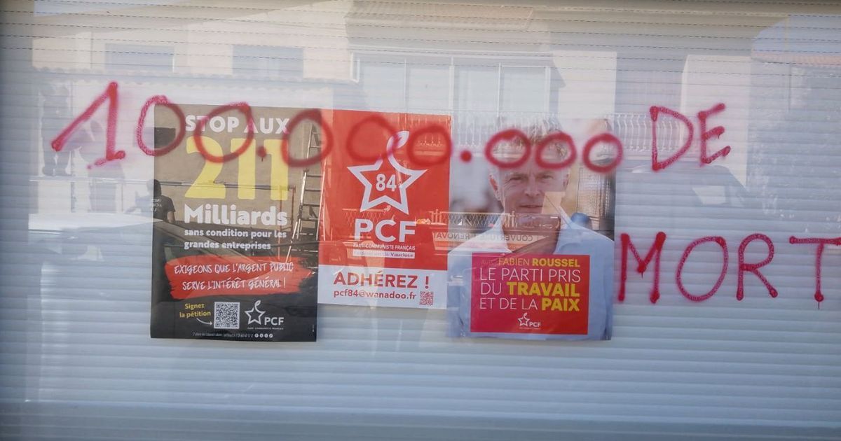 Dans la nuit du 20 au 21 avril 2026, le local du Parti communiste de Carpentras a subi des dégradations sévères, comme le rapporte le parti dans un communiqué sur les réseaux sociaux. La vitrine a été éclaboussée de croix rouges, tandis que des messages provocateurs tels que "Cassez-vous" et "100.000.000 de morts" ont été gravés sur la porte d'entrée.
