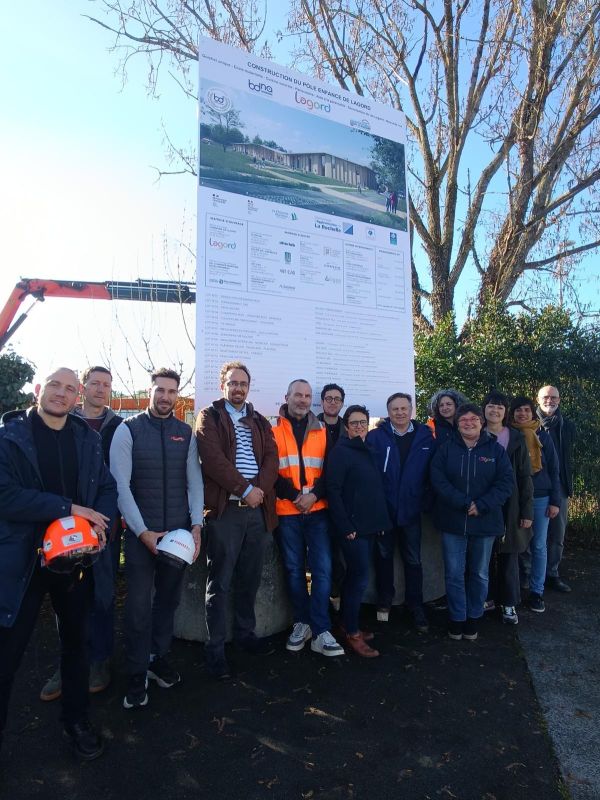 Les entreprises impliquées dans ce projet d'envergure, toutes basées dans un rayon de 100 kilomètres, ont commencé les travaux le 10 mars dernier. Les membres de ces entreprises ont célébré le lancement du chantier en posant devant le panneau d'information du projet. Le maire de Lagord a souligné l'importance de ces nouvelles infrastructures pour l'avenir des jeunes Lagordais.